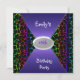 Invitación de cumpleaños número 18 para niñas y adolescentes con estampado animal multicolor arcoíris y negro y púrpura. Personalizable.