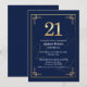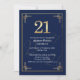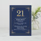 Invitación Fiesta de cumpleaños número 21 elegante azul oro