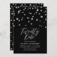 Celebra tu día especial con esta invitación mínima de cumpleaños 21. Este diseño cuenta con un elegante guión de letras "Twenty One" con un confeti en forma de hexágono con una combinación en color negro y plata. Hay más diseños disponibles en mi tienda BaraBomDesign.