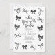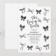 Haz que tu evento de cumpleaños sea inolvidable con nuestras invitaciones de cumpleaños número 30 de Coquette. Estas invitaciones están bellamente diseñadas con lazos de acuarela negra con estilo y una plantilla de texto elegante que incluye el título "ella está atando sus veinte años".