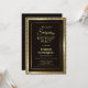 Una moderna y sorpresiva invitación a la fiesta de cumpleaños número 30 con un borde de oro dentro de un marco de rayas diagonales adornado con oro sobre un fondo negro.