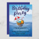Invitación de cumpleaños número 30. Tema tropical, diseño con características del océano y bebida de coco flotante.