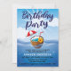 Invitación a la fiesta de cumpleaños número 30. Con tema tropical, diseño con características del océano y bebida de coco flotante.