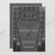 Cumpleaños 30 Funeral por mi juventud Muerte a mis 20, con temática gótica en blanco y negro, marco con forma de ataúd, tipografía retro, una calavera, velas negras, una araña y telaraña con un tema vintage.