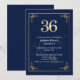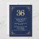 Invitación Fiesta de cumpleaños número 36 elegante azul oro