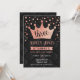 Diseño elegante en rosa dorado y negro con brillo falso. Tarjeta de invitación divertida y linda con "tres" en letra cursiva y confeti. Perfecta para una celebración de cumpleaños número 3 con estilo.