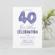 Nuestras invitaciones para una fiesta de cumpleaños número 40 minimalistas están listas para redefinir tus celebraciones de cumpleaños. Con un fondo blanco simple que emana elegancia, un caprichoso globo aerostático '40' azul dibujado a mano que le da un toque juguetón, y una plantilla de texto moderna y sin esfuerzo que puedes personalizar con facilidad. Un patrón moderno azul y blanco en la parte posterior termina un diseño que combina magistralmente la sofisticación y la diversión.