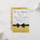 Invitación a la graduación de Bow con aspecto de espuma de oro, elegante y femenina invitación a la fiesta en su fabuloso cumpleaños número 50. Purpurinoso brillante fondo de impresión blanco y dorado con un falso arco negro. Elegante y elegante para disfrutar de una elegante atmósfera formal o de una relajante reunión.