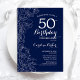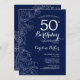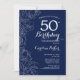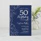 Invitación a la fiesta de cumpleaños número 50 de la floral blanca de la marina. Diseño moderno minimalista con acentos de dibujos botánicos y tipo de letra de guión tipográfico. Sencilla carta de invitación a la moda, perfecta para una elegante celebración de cumpleaños femenina. Se puede personalizar a cualquier edad. Invitaciones Zazzle impresas o una plantilla imprimible digital de descarga instantánea.