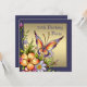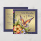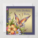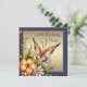 Invitación de cumpleaños número 50 de la mujer mariposa y flores silvestres con fondo azul marino y dorado. Personalice con los detalles de su fiesta y estilo de fuente y color, y también puede eliminar el texto de la parte frontal.