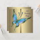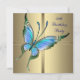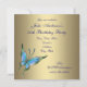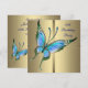 Elegante oro con hermosa invitación de cumpleaños número 50 para mujer con mariposa azul teal y púrpura.