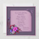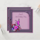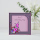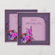 Invitación de cumpleaños número cincuenta de mujer con elegantes remolinos florales de mariposa rosados y morados.