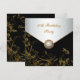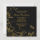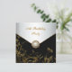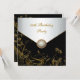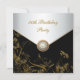 Invitación de cumpleaños número cincuenta de mujer con superposición de flores negras y doradas con borde de joya de perla.