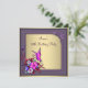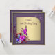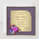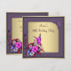 Invitación a la fiesta de cumpleaños cincuenta de mujer con elegantes remolinos florales de mariposa dorada y morada.