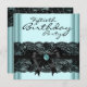 Plantilla de invitación para la fiesta de cumpleaños número 50 de una mujer con elegante encaje negro y azul turquesa. Esta hermosa invitación de cumpleaños en negro y azul turquesa se personaliza fácilmente para su evento simplemente eligiendo el botón "¡Personalízalo!" para comenzar a agregar los detalles del evento, el estilo de letra, el tamaño y color de la letra, y la redacción. Tenga en cuenta que todos los stickers, tarjetas y diseños de invitaciones que encontrará en Zazzle son gráficos impresos sin joyas reales, lazos, partes o piezas en relieve, repujadas o añadidas.