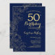 Invitación Fiesta de cumpleaños número 50 de Navy Blue Gold F