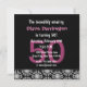 Este patrón floral de plata y negro con nombre personalizado de cinta y acentos rosas es una manera divertida pero elegante de invitar a la gente a una fiesta de cumpleaños número 50. Todo el texto es totalmente personalizable. Puede experimentar con diferentes tipos de papel haciendo clic en la pestaña "Opciones de invitación" en la esquina superior derecha. Le recomiendo el papel metálico de casco de hielo que le da a su invitación de cumpleaños un brillo festivo. ¡Encantador!