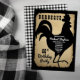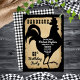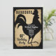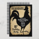 Estilo de granja rústica con aspecto de papel envejecido y desgarrado y cuadros de búfalo en negro y blanco como fondos para un diseño de silueta de gallo negro "BARBACOA" para fiesta de cumpleaños por Holiday Hearts Designs (derechos reservados).