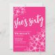 Moda 60 Invitación a la Fiesta de Cumpleaños Hot Pink 60. Una divertida pero elegante invitación a la fiesta de cumpleaños número 60 con flores rosa y blanca brillantes para los jóvenes en el corazón. Un patrón de flores juguetón enmarca una tipografía de escritura "ella tiene sesenta" mezclada con un tipo de letra serif más clásico. Celebra sesenta años de vida con este hermoso diseño botánico. La parte divertida es que puedes cambiar TODOS los colores. No sólo se pueden cambiar los colores de fondo y el tipo de letra, sino que también se pueden cambiar las líneas de las flores. Disponible en forma de invitación impresa, o como una invitación digital descargable que puede enviar por correo electrónico o que ha impreso localmente.