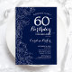 Invitación a la fiesta de cumpleaños número 60 de la floral blanca de la marina. Diseño moderno minimalista con acentos de dibujos botánicos y tipo de letra de guión tipográfico. Sencilla carta de invitación a la moda, perfecta para una elegante celebración de cumpleaños femenina. Se puede personalizar a cualquier edad. Invitaciones Zazzle impresas o una plantilla imprimible digital de descarga instantánea.
