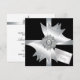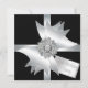 Invitación elegante con estilo de regalo envuelto en blanco y negro con un hermoso lazo blanco centrado con diamantes y etiqueta. Agregue sus detalles en el reverso con los detalles del evento, estilo de fuente, tamaño y color de la fuente, y redacción.