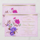 Una elegante y rústica invitación a la fiesta de cumpleaños número 60 de color rosa y morado con texto dorado.