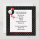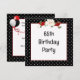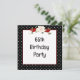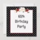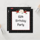 Marco de lunares en blanco y negro con un ramo floral y cinta roja para una invitación de cumpleaños número 65.