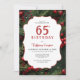 Navidades 65ª fiesta de cumpleaños Invitación con agujas de pino y bayas holly para celebrar su 65º cumpleaños.