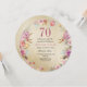 Invitación para la fiesta de cumpleaños número 70 con flores rosadas y doradas campestres