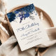Esta elegante invitación de cumpleaños número 70 cuenta con un borde superior floral de flores azul marino y hojas de lámina plateada. Las palabras "Cumpleaños número 70" y el nombre del invitado de honor aparecen en escritura a mano informal azul marino, con el resto del texto personalizable en fuente sans serif gris carbón. El diseño floral se repite en el reverso. Edite fácilmente el texto para cualquier cumpleaños de cualquier edad.