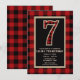 Invitaciones para Fiesta de Cumpleaños número 7 con Cuadro Escocés Búfalo Rojo y Negro Rústico.