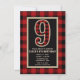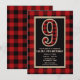 Invitaciones para Fiesta de Cumpleaños número 9 con Cuadro de Búfalo Rojo Rústico y Negro.