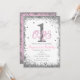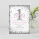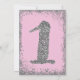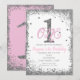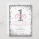 Invitación a la fiesta de cumpleaños número uno de niñas rosadas y plateadas.