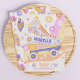 Un divertido y luminoso diseño de patines de estilo retro en la paleta de colores rosa pastel, naranja, morado y amarillo. En la parte delantera hay un patín de rodillos blancos con el texto "Vamos a correr" en un guión retro con una ráfaga de arco iris detrás, y en la parte trasera hay un divertido patrón brillante de flores retro. Personalizar los detalles para su fiesta! Vea toda la colección de fiestas coincidentes.