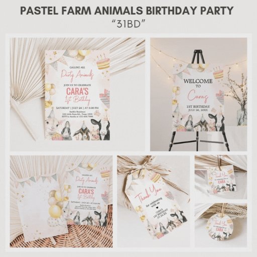 Pastel Farm Animals Birthday PartyDiseñado por Camille R