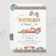 Curada invitación de cumpleaños de autos de carrera para cualquier niño.