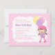 ¡Así es como rodamos! Ven a patinar y celebrar con el chica de cumpleaños en una fiesta de cumpleaños de patinaje sobre ruedas! Esta invitada de cumpleaños gitana y dulce en rosa y púrpura tiene una linda niña con su pelo atado en colas de pony. Está en equipo de patinaje con casco, ruedas, rodilla y guardias de codo y se aferra a varios globos. Fondo del patrón de zigzag chevron rosado.Personalice fácilmente los detalles de su fiesta.