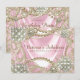 Invitación de fiesta de cumpleaños de perlas rosadas y marfil para mujer con elegantes hilos de perlas y remolinos de perlas en un glamuroso fondo de satén rosa. Puede personalizar fácilmente esta hermosa invitación de fiesta de cumpleaños rosa elegante para su evento simplemente agregando sus detalles en el estilo de fuente y redacción de su elección.