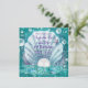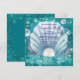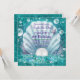 Invitación a la fiesta de cumpleaños bajo el mar con hermoso brillo azul turquesa en el fondo bajo el mar y perla bonita. Puedes personalizar fácilmente esta hermosa fiesta de cumpleaños bajo el mar en púrpura y azul turquesa para tu evento simplemente agregando tus detalles en el estilo de fuente que elijas. Este es un diseño impreso sin brillo real, joyas, etc.