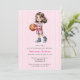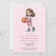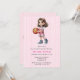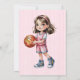 ¡Celebra a tu pequeño atleta con la invitación de este divertido cumpleaños de chicas de baloncesto! Con un jugador de baloncesto chica vestido con un uniforme rosado con zapatos altos purpurinas de color azul brillante, este diseño es perfecto para un fiesta de temática deportiva. Genial para los chicas que aman el baloncesto, esta invitación marca el tono para una celebración del zorrillo.