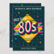 ¡Prepárate para divertirte como si fuera 1985! Esta invitación personalizable con tema de los 80 está diseñada para traer de vuelta lo mejor de la década de los ochenta para una celebración de cumpleaños llena de nostalgia y diversión retro. Perfecta para cumpleaños importantes como los 40 o 50 años, esta invitación prepara el escenario para una noche inolvidable. La parte delantera presenta gráficos audaces inspirados en los 80 con "Fiesta de regreso a los 80" en el centro. Personaliza el texto superior e inferior para hacerlo tuyo y crear una invitación tan única como tu celebración. Comparte los detalles completos del evento en la parte posterior de la tarjeta y haz que tus invitados sepan que tendrán una noche de vibras vintage de los 80. Agrega tu información personalizada y haz que la invitación de tu evento realmente se destaque con un estilo de los 80.