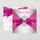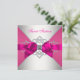 Invitación elegante de fiesta de cumpleaños de diamantes blancos y lazo rosa caliente. Agrega tus detalles al frente y atrás de esta hermosa invitación de fiesta de cumpleaños blanca y rosa caliente simplemente agregando los detalles de tu evento, estilo de fuente, tamaño y color de fuente, y redacción.