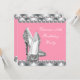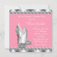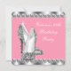 Elegante invitación a la fiesta de cumpleaños de mujer con zapatos de tacón alto plateados y diamantes. Esta hermosa invitación de cumpleaños en gris plateado y rosa se personaliza fácilmente para su evento.