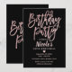 Invitación Fiesta de Cumpleaños Rosa Oro Foil y Moderno Negro