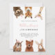 Invitación a la fiesta de cumpleaños de un niño lindo y divertido que incluye ilustracion de animales de bosque de racco, zorro, ciervo, búho, oso y conejo. El texto dice "Salvaje uno". Perfecto para una fiesta de cumpleaños de chica.
