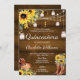 Plantilla editable Western Cowgirl Quinceañera Birthday Invitation con girasoles. Celebre la tradicional mayoría de edad con nuestra invitación a la fiesta de cumpleaños de Quinceañera, el rústico oeste, perfecta para una celebración con temática de país. Esta invitación mezcla la calidez de un fondo rústico de madera con el encanto de los acentos florales y las luces de cuerda, culminando en un diseño tan único como hermoso.