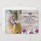 Invitación Fiesta de cumpleaños rústica Foto Floral Grey Wood