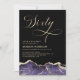 Una sofisticada y elegante invitación de cumpleaños número sesenta con un rico diseño de ágata dorada y púrpura. Impresa en cartulina de alta calidad, esta invitación combina la lujosa modernidad con la belleza atemporal. Los tonos púrpura profundo, acentuados por detalles dorados radiantes, crean un estilo regio y elegante, lo que la convierte en la elección perfecta para una celebración de cumpleaños memorable y de alta categoría.