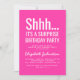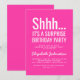 Invitaciones modernas de cumpleaños sorpresa con un fondo rosa atrevido que se puede cambiar a cualquier color, y una plantilla de celebración de cumpleaños tipográfica.