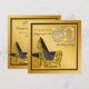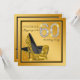 Invitación elegante de zapato de tacón alto con brillo negro y dorado con números de diamante dorado para fiesta de cumpleaños sorpresa de 60 años. Esta hermosa invitación de cumpleaños sorpresa de 60 años en negro y dorado se personaliza fácilmente para su evento.